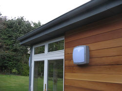 High quality double glazed windows and doors together with a double insulated timber frame were specified to reduce heat loss. Timber floor finish throughout pulls the kitchen and sunroom into one room. With a zinc roof the painted render and timber cladding help visually tie the sunroom to the existing house.